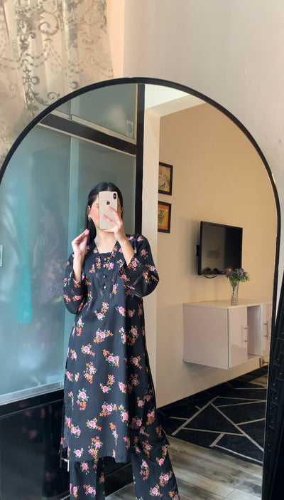 Midnight Bloom Co-Ord Elegant Black 2 Piece Floral Suit for Women